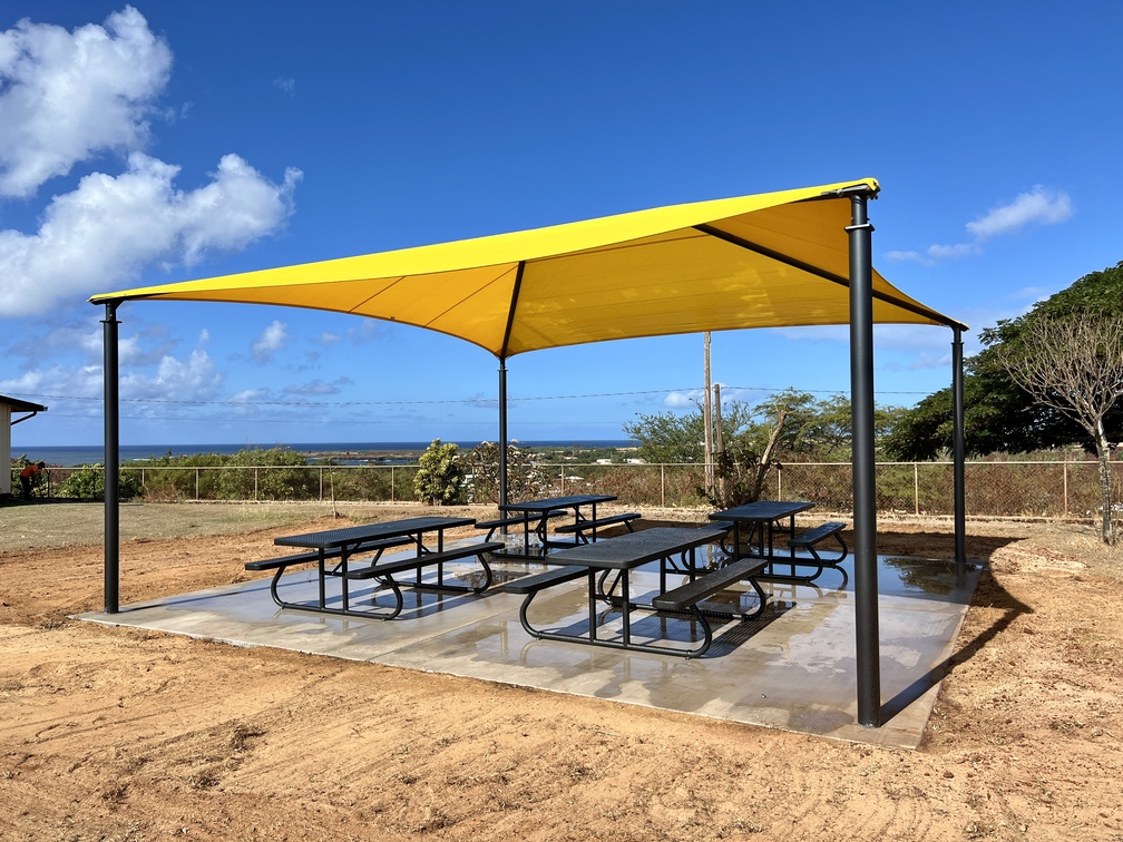 Pacific Playscapes installs freestanding shade systems and outdoor site amenities that improve comfort, usability, and safety for parks, playgrounds, schools, and community spaces across Hawaii.